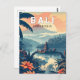 Diseño de viajes vectoriales retro de Bali. Bali es una isla en el sudeste asiático conocida por sus playas, templos y cultura. También alberga vida marina, parques de safari y arte.