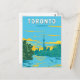 Diseño de viaje vector retro de Toronto. Toronto, la capital de la provincia de Ontario, es una importante ciudad canadiense a lo largo de la orilla noroccidental del lago Ontario.
