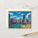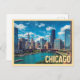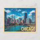 Una impresionante postal de estilo vintage que exhibe el icónico horizonte de Chicago, con sus impresionantes rascacielos que se extienden sobre el río Chicago. Los colores vivos y clásicos y el filtro retro le dan a esta imagen un auténtico estilo de poster de viajes vintage, evocando la rica historia de la ciudad y la belleza arquitectónica. Esta tarjeta es perfecta para enviar un mensaje reflexivo, conmemorar un viaje a la Ciudad del Viento o enmarcar como una pequeña pieza de arte urbano, un gran diseño para todo aquel que ame Illinois, vistas a la ciudad o diseños clásicos de paisajes urbanos estadounidenses.