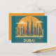Diseño de Dubái al estilo de Vintage Travel con una escena costera con la playa y el horizonte de Dubai.