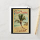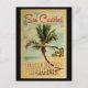 Un retro único y moderno San Cristóbal República Dominicana de mediados de siglo, impreso en estilo vintage de viaje poster. Cuenta con una palmera curvada en una playa de arena con el océano bajo un cielo azul turbio.