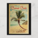 Un diseño de arte retro único de mediados de siglo moderno de Coconut Creek Florida, impreso en estilo poster de viajes vintage. Cuenta con una palmera curvada en una playa de arena con el océano bajo un cielo azul turbio.