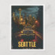 Postcarta de viaje del retro de arte clásico de Seattle Washington