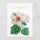 Lista de cubo vintage y coleccionable postal de viaje de flores del estado de Hawái con una estampilla vintage de flores de hibisco con moderna tipografía artística deco de mediados de siglo.