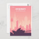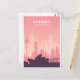 A cualquiera le encantaría recibir esta postal de poster de viajes rosa con un ilustracion retro del horizonte de Sydney, Australia, incluyendo la Ópera.