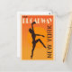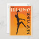 A cualquiera que le guste Broadway en la ciudad de Nueva York le encantaría recibir esta postal de viaje con un ilustracion retro de una bailarina de un espectáculo de Broadway en un musical.