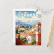 Descubra la rica historia y la impresionante belleza de Granada, España, con esta tarjeta postal de viajes de inspiración vintage. Este ilustracion presenta el impresionante palacio de la Alhambra, las pintorescas calles empedradas y las majestuosas montañas de Sierra Nevada. Perfecto para los amantes de la cultura, la historia o los sueños de visitar esta joya andaluza, esta postal captura la esencia del encanto atemporal de Granada.