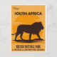 ¡A cualquiera le encantaría recibir esta postal africana de viaje con un ilustracion retro de un león en el Parque Nacional Kruger en Sudáfrica!