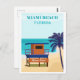 A cualquiera le encantaría recibir esta tarjeta postal antigua con un ilustracion retro de una estación de socorristas en el océano en Miami Beach, Florida.