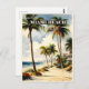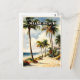 A cualquiera le encantaría recibir esta postal de viaje con un ilustracion retro de palmeras y el océano en Miami Beach, Florida.