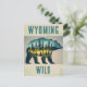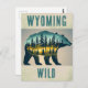 A cualquiera le encantaría recibir esta postal de viaje con un ilustracion retro de un oso pardo en el salvaje de Wyoming.