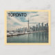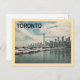 Una impresionante postal de estilo vintage que exhibe el icónico horizonte de Toronto, incluida la famosa Torre CN, vista desde el pintoresco puerto lleno de botes y yates. Los colores clásicos y anticuados y el filtro retro le dan a esta imagen un auténtico estilo de poster de viajes vintage, evocando la arquitectura moderna de la ciudad y el encanto frente al mar. Esta tarjeta es perfecta para enviar un mensaje reflexivo, conmemorar un viaje a Ontario, o encuadrar como una pequeña pieza de arte urbano.