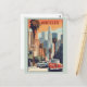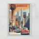 A cualquiera le encantaría recibir esta tarjeta postal de viaje con un ilustracion retro del horizonte de la ciudad de Los Ángeles en el estado de California, ¡incluyendo una palmera y un tema de auto!