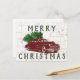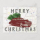 Un diseño de Navidades de estilo vintage que tiene un coche clásico transportando un árbol de Navidad encima con un mapa detrás. Este saludo de viaje de vacaciones de estilo retro será divertido esta temporada de vacaciones.