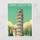 vintage, retro, travel, moderno, acuarela, clásico, inclinado, Tower, Pisa, italia,