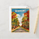 Captura la esencia serena de Vermont con este diseño retro inspirado en el viaje. Esta obra, infundida con vibraciones nostálgicas y encanto vintage, muestra el vibrante follaje otoñal de Vermont en una estética retro que recuerda a los afiches de viajes clásicos de antaño.
