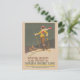 ¡A cualquiera le encantaría recibir esta tarjeta postal de viaje con un ilustracion de esquí retro de un esquiador en el Parque Estatal Indiana Dunes!