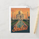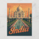 Viaje al corazón de la India con este hermoso poster de estilo vintage. Cuenta con un impresionante ilustracion del emblemático Taj Mahal, perfectamente reflejado en su tranquila piscina reflectante, todo bajo un cálido cielo atardecer. Este poster capta la belleza intemporal y romántica de uno de los monumentos más famosos del mundo. Es el arte mural perfecto para los entusiastas de los viajes, los aficionados a la historia o cualquiera que quiera una hermosa pieza de India en su casa.