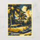 Postal Viaje en coche retro de árbol de palmeras de Flori