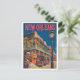 Este afiche de estilo vintage refleja el animado y animado ambiente de Nueva Orleans. El diseño se compone de una pareja de diseño que sonríe en primer plano, con los emblemáticos balcones de hierro forjado del barrio francés y una carroza tirada por caballos. El estilo artístico, con sus colores vivos y llamativos y su aspecto vintage, evoca el ambiente clásico y nostálgico de la publicidad de viajes de mediados de siglo.