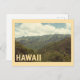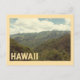 Una impresionante postal de estilo vintage con los exuberantes, espectaculares e icónicos paisajes montañosos de Hawái. La imagen capta los valles y puentes profundos y verdes bajo un cielo suave y nublado. Los colores clásicos y anticuados y el filtro retro le dan a esta tarjeta un auténtico toque de poster de viajes vintage, que evoca la rica belleza natural de las islas. Esta tarjeta es perfecta para enviar un mensaje reflexivo, conmemorar unas vacaciones en la isla o enmarcar como una pequeña pieza de arte tropical. Un gran diseño para todo aquel que ame la naturaleza, las islas del Pacífico o los paisajes únicos del Estado Aloha.