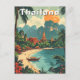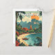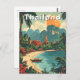 Una postal de viajes clásica de estilo vintage que capta la serena belleza de una playa tailandesa, con palmeras, un tradicional barco de cola larga y arquitectura de templo. Perfecto para viajar, recoger o enviar notas a amigos. Impresión de arte retro de alta calidad que evoca la época dorada de los afiches de viajes en Tailandia.