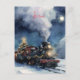 Una locomotora de vapor viaja a través de un terreno nevado bajo un cielo estrellado nocturno, adornado con luces de vacaciones y un árbol de Navidad, creando una atmósfera mágica de invierno. Si necesita personalización o elementos coincidentes, póngase en contacto conmigo.