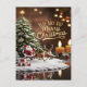 Se ve a Santa Claus volando por el cielo nocturno con sus renos, entregando regalos a niños de todo el mundo. La escena está llena de estrellas brillantes y una sensación de alegría navideña.