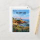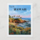 A cualquiera le encantaría recibir esta tarjeta postal hawaiana de época con un ilustracion retro de una playa y palmeras en una isla de Hawaii.