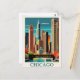 A cualquiera le encantaría recibir esta postal de viaje con un ilustracion retro del horizonte de la ciudad de Chicago, Illinois.
