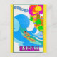 A cualquiera le encantaría recibir esta tarjeta postal tropical hawaiana con un ilustracion retro y colorido de surfista navegando en el océano en Hawái.