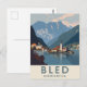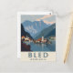 Este cartel de viaje de estilo vintage captura el impresionante paisaje de Bled, Yugoslavia, con la icónica iglesia y el castillo en la ladera de la colina. La obra de arte utiliza un estilo geométrico simple con una paleta de colores apagados para evocar un ambiente clásico y retro. Este diseño es una pieza perfecta de nostalgia para cualquiera que recuerde la región como parte de Yugoslavia o para aquellos que simplemente aprecian el arte de viaje vintage con un toque de historia.