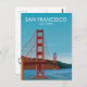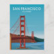 Ilustracion de afiches de viajes Retro San Francisco California que cuenta con una vista diurna del puente Golden Gate. Este diseño vintage traerá recuerdos de afiches clásicos de viajes de una época pasada. Personalizar esto guarda la tarjeta de fecha para que sea la única que sea la suya para que sea ideal para su día especial.