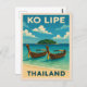 Escape al paraíso con esta vintage postal de Ko Lipe, Tailandia. Capturando las aguas turquesa de la isla, los tradicionales barcos de cola larga y el encanto tropical, esta pieza es perfecta para los amantes de la playa y los amantes de la lujuria.