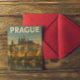 Elegante artista de viaje vintage de Praga postal de la República Checa con vistas a la ciudad checa con sus edificios emblemáticos. Un gran recuerdo y una idea de regalo para todos los turistas.