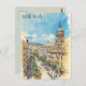 Esta postal de viaje, en forma de boceto dibujado a mano, muestra una vista de la calle de Málaga. Esta es una hermosa postal para viajeros a / desde España.