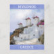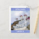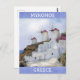 ¡A cualquiera le encantaría recibir esta postal de viaje de las islas griegas con un ilustracion acuático de molinos de viento en Mykonos, Grecia!