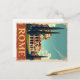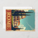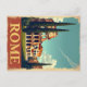 Un afiche de viajes angustiado, de inspiración vintage, presenta el icónico Coliseo de Roma, enmarcado por altos cipreses bajo un cielo azul claro con nubes sutiles. "ROMA" se muestra de forma destacada en la parte inferior.