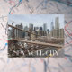 Postal de viaje que presenta una imagen panorámica del horizonte de Lower Manhattan, New York City vista desde el puente de Brooklyn. Seleccione de la tarjeta de estilo brillante o mate.