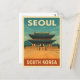 No deje de admirar la elegancia del pasado real de Corea con esta postal retro inspirada en el viaje que presenta el Palacio Gyeongbokgung. Esta pieza, infundida con vibraciones nostálgicas y encanto vintage, captura uno de los puntos de referencia más icónicos de Seúl en una estética retro que recuerda a los afiches de viajes clásicos de antaño.