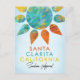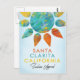 Brillante y colorido diseño de Santa Clarita California que está aprobado al 100% Sunshine. Colores cálidos de color rojo, naranja, turquesa y agua en un estilo acuático con un fondo de sombra azul bonito.