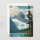 Diseño de postales de viaje tradicionales del Parque Nacional de la Bahía del Glaciar. El Parque Nacional Glacier Bay en Alaska es conocido por sus impresionantes glaciares, fiordos dramáticos y diversos ecosistemas marinos. Los huéspedes pueden explorar el impresionante paisaje del parque a través del kayak, senderismo y observación de la vida silvestre, con oportunidades de ver focas, leones marinos e incluso ballenas jorobadas en su hábitat natural.