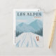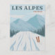 vintage, retro, travel, moderno, acuarela, clásico, les alpes Francia, esquí, Alpes, postales francesas,