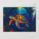 Postal Vibrant Stained Glass Sea Turtle Ocean Design