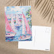 Postal Vibrante acuarela Barcos de vela rosados Costa Tro