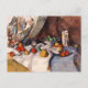 Postal de arte fino con la pintura del artista Post-impresionista francés Paul Cézanne (1839-1906), Still Life with Apples (1898). A lo largo de su carrera, la vida siguió siendo un tema importante. Colocaba los objetos con cuidado, pasando horas posicionándolos. Esta vida todavía exhibe varias frutas sobre una mesa con telón de fondo de una cortina.
