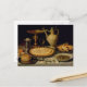 Postal Vida con una tarta, pollo, pan y aceitunas
