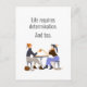 "La vida requiere determinación. Y el té"--con dos amigos en una mesa disfrutando del té y la conversación juntos (© Mira y Georgiana). Una cita de té y diseño para aquellos que usan esta bebida como combustible e inspiración, y que la beben en momentos de relajación así como en momentos de concentración. Espero que uses esta tarjeta y tarjeta de felicitación para reunirte con amigos con una buena taza de té. Haz saber a tus amigos que pueden pasar por tu casa en cualquier momento para charlar y tomar un té, o que estás ansioso por reunirte en el centro en una casa de té.