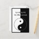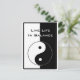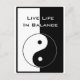 El clásico yin yang blanco y negro, símbolo de equilibrio y armonía, se sitúa bajo las palabras "Vive la vida en equilibrio". Viste esto en clase de yoga, trabaja en la clínica de wellness o simplemente en la tienda de comestibles para recordarte vivir tu vida en armonía y moderación.