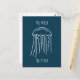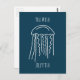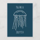 Mariscas de arte con contorno blanco sobre fondo azul marino. Este tema marino acuático y el arte moderno son adorables y divertidos. Deseas medusas.
